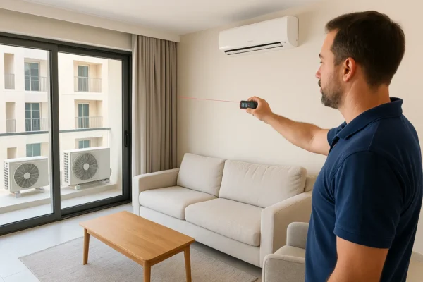 In a recent project, I visited a client in Sharjah whose 4 × 5 meter living room was consistently hot. After measuring dimensions and noting two large west-facing windows, I ran a manual calculation: